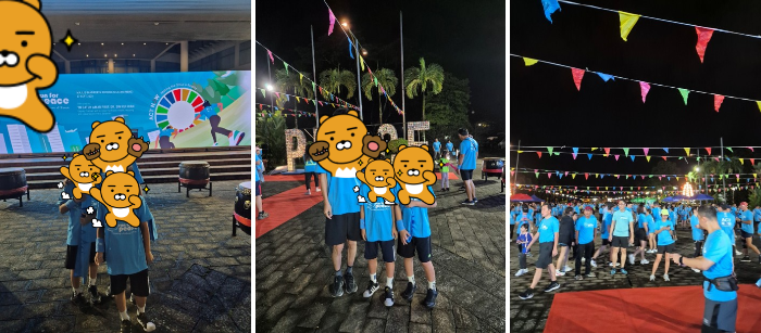 대회 참가시간이 새벽5:30 한국에서라면 말도안되는 시간에 행사가 개최되는 것이었지만, 말레이시아 쿠칭이 적도 근처라서 더울까봐 대회를 일찍 하나보다.....생각해 봅니다.. 해도 뜨지 않은 시간이라 컴컴했지만, 우리가족4명은 시간에 맞춰 집합장소에 도착했고, '6시쯤에는 대회가 시작될까?' 추측해 보았지만, 실제 대회는 6:40 경 시작되었습니다.(ㅠ.ㅠ)