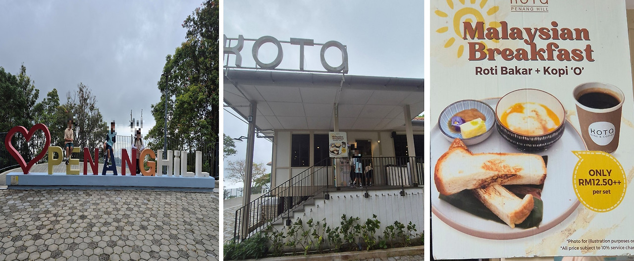 - 페낭힐: 823m 높이에서 페낭 시내를 내려다볼 수 있는 명소. 푸니쿨라(경사 케이블카)를 타고 올라가는 재미가 있습니다. 지대가 높아서 시원하고 페낭여행중 가장 기억에 남는 장소였답니다. 페낭힐을 둘러보면서 간식먹고 잠시 쉬면 2시간이 훌쩍 지나갑니다.