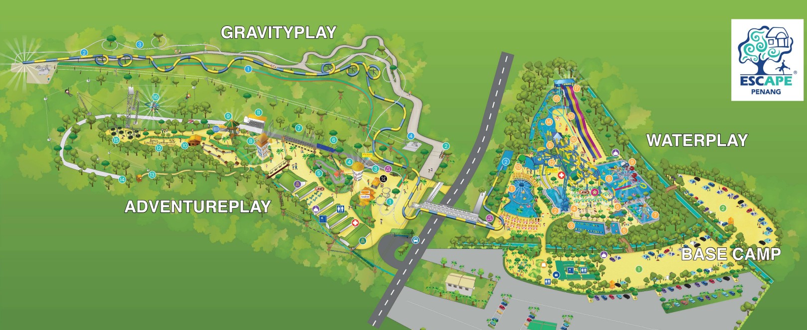 - 워터파크와 어드벤처 파크로 나뉘며, 세계 최장 미끄럼틀과 짚라인으로 유명합니다. 기네스북에 4개가 올랐다고 홍보를 하네요 (워터슬라이드 1,111m, 짚코스터 1,135m 튜브레이스 453.3m 물바구니 28,757리터)