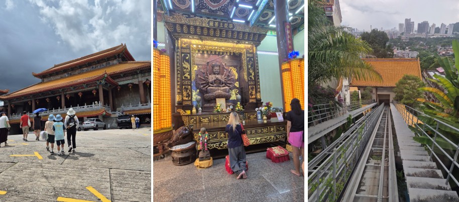 - 극락사(極樂寺, Kek Lok Si): 동남아 최대 불교사찰 중 하나. 웅장한 규모와 섬세한 조각이 인상적입니다. 산의 한쪽면을 모두 깎아서 건물과 편의시설을 지었습니다. 이러한 모습은 충청북도 단양에 있는 구인사(절)가 떠올랐습니다. 페낭힐을 다녀온후 극락사를 오르다보니, 무더운 더위에 체력이 방전되기 직전입니다. (ㅠ.ㅠ)
